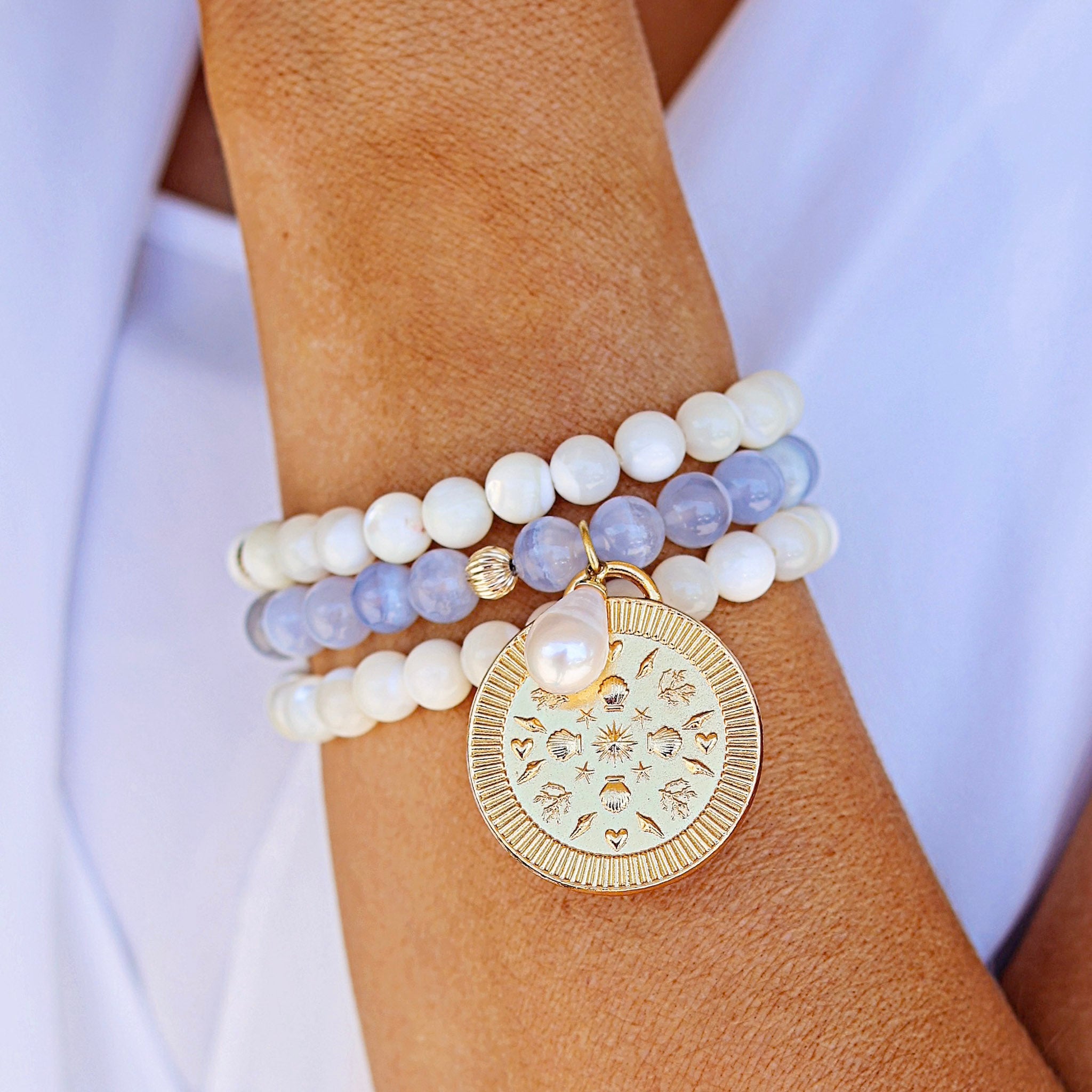 Our asymmetrical bracelet featuring sporadically stationed freshwater pearls mixed with shimmering 14k gold-filled beads. This design beautifully contrasts the organic shape of the pearls with the polished gold, creating a stunning and perfectly imperfect piece. The playful arrangement adds a modern twist, making it an eye-catching addition to any jewelry collection. Lightweight and easy to wear, this bracelet is perfect for layering or wearing solo, adding a touch of sophistication to any outfit.