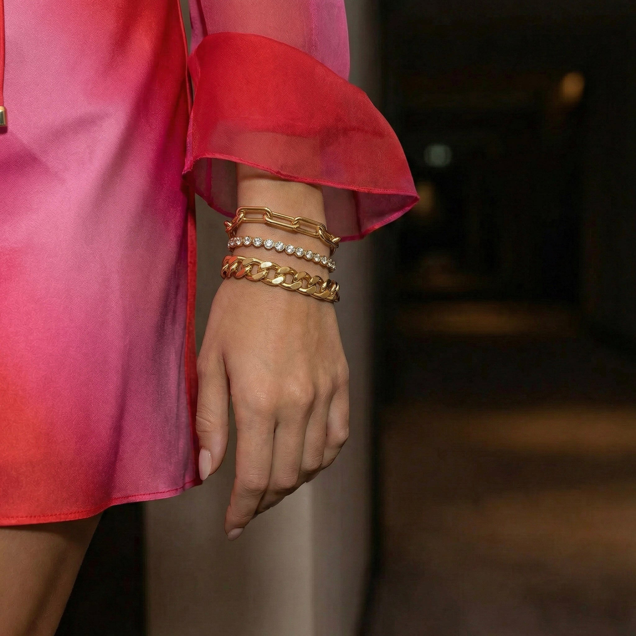 The Sorrel Bracelet brings a fresh edge to timeless look. Crafted in 8mm gold vermeil curb links, it delivers just the right balance of weight and shine. Whether worn solo as a statement or layered with your everyday favorites, it’s the versatile piece that moves effortlessly from casual to refined.