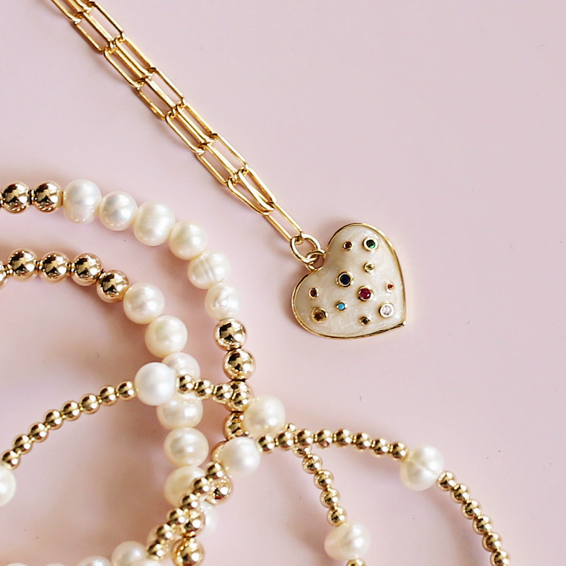 Elevate your style with The Blush Heart Necklace, a romantic blend of elegance and charm. Crafted with a 14k gold-filled paperclip chain, this necklace showcases a heart charm, accented with vibrant gemstones for a playful pop of color. The Blush Necklace is perfect for layering or worn alone as a standout piece.