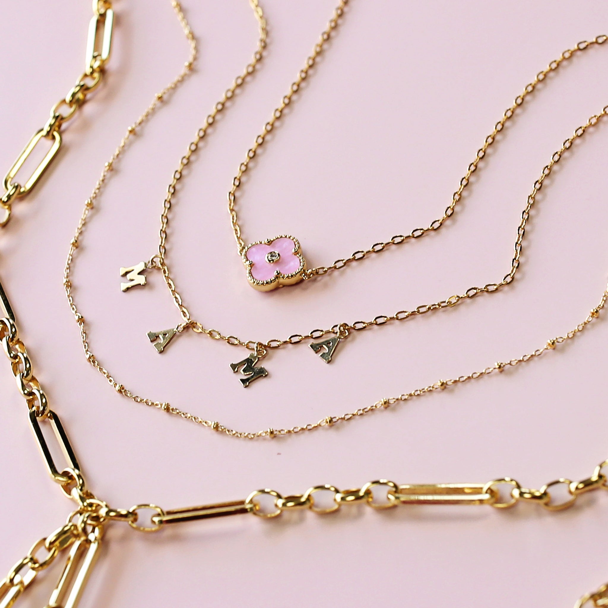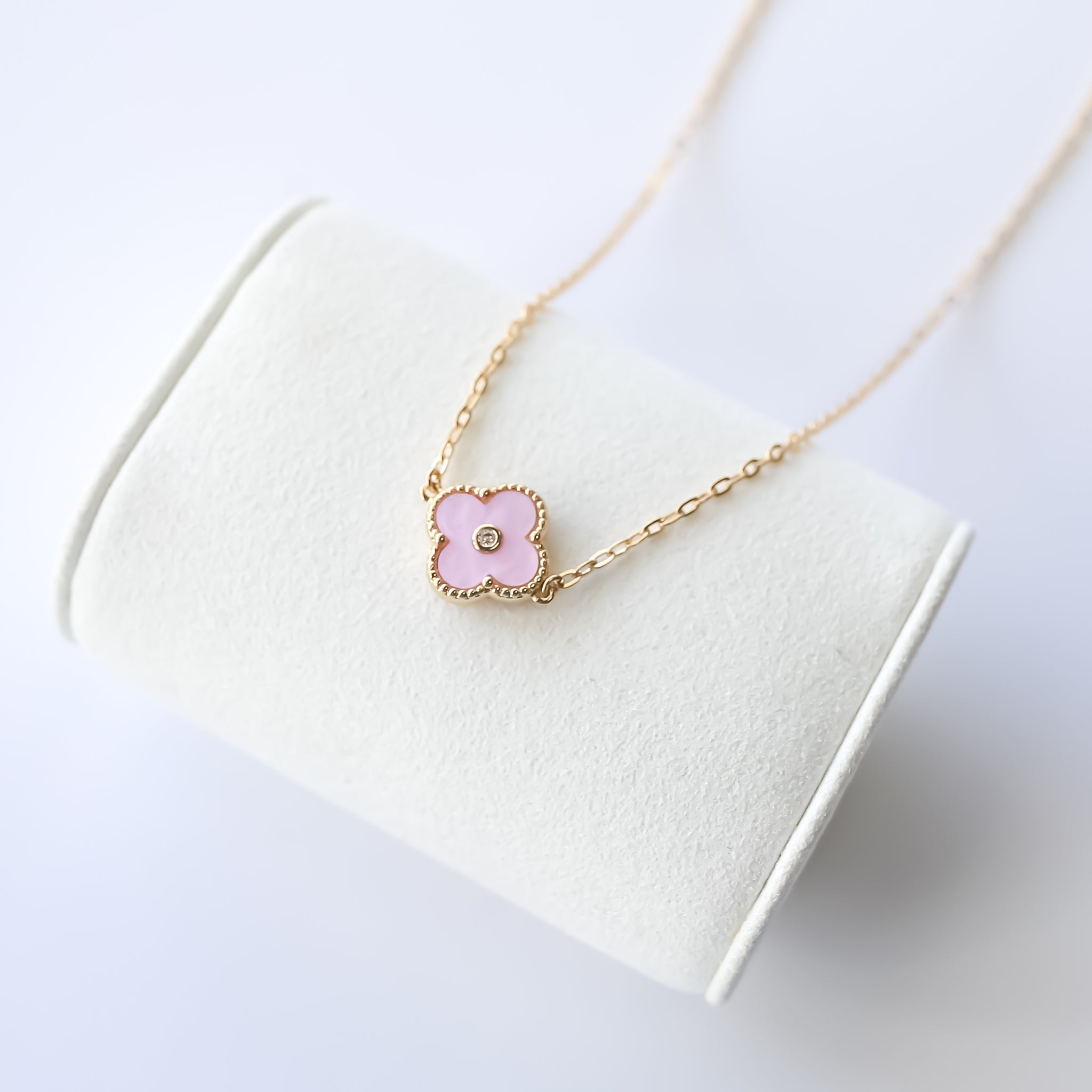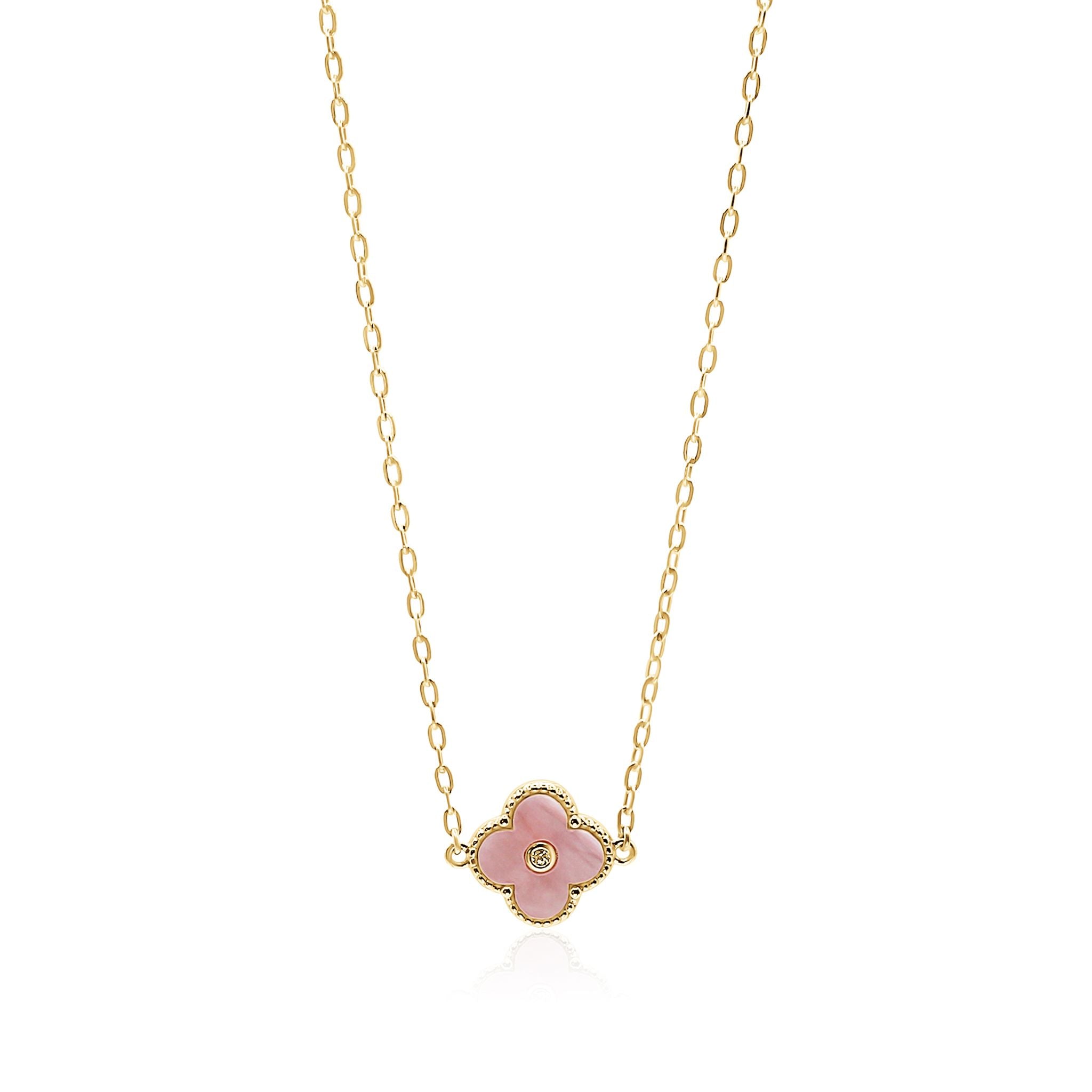 This delicate necklace showcases a dainty 14k gold chain, exuding subtle sophistication. At its center, a 14mm pink connector shimmers with soft tones, adding a timeless touch. Designed with adjustable sizing for the perfect fit, this versatile piece can be worn alone or layered with others. Whether for everyday wear or a special occasion, it brings a sense of effortless elegance to any outfit.