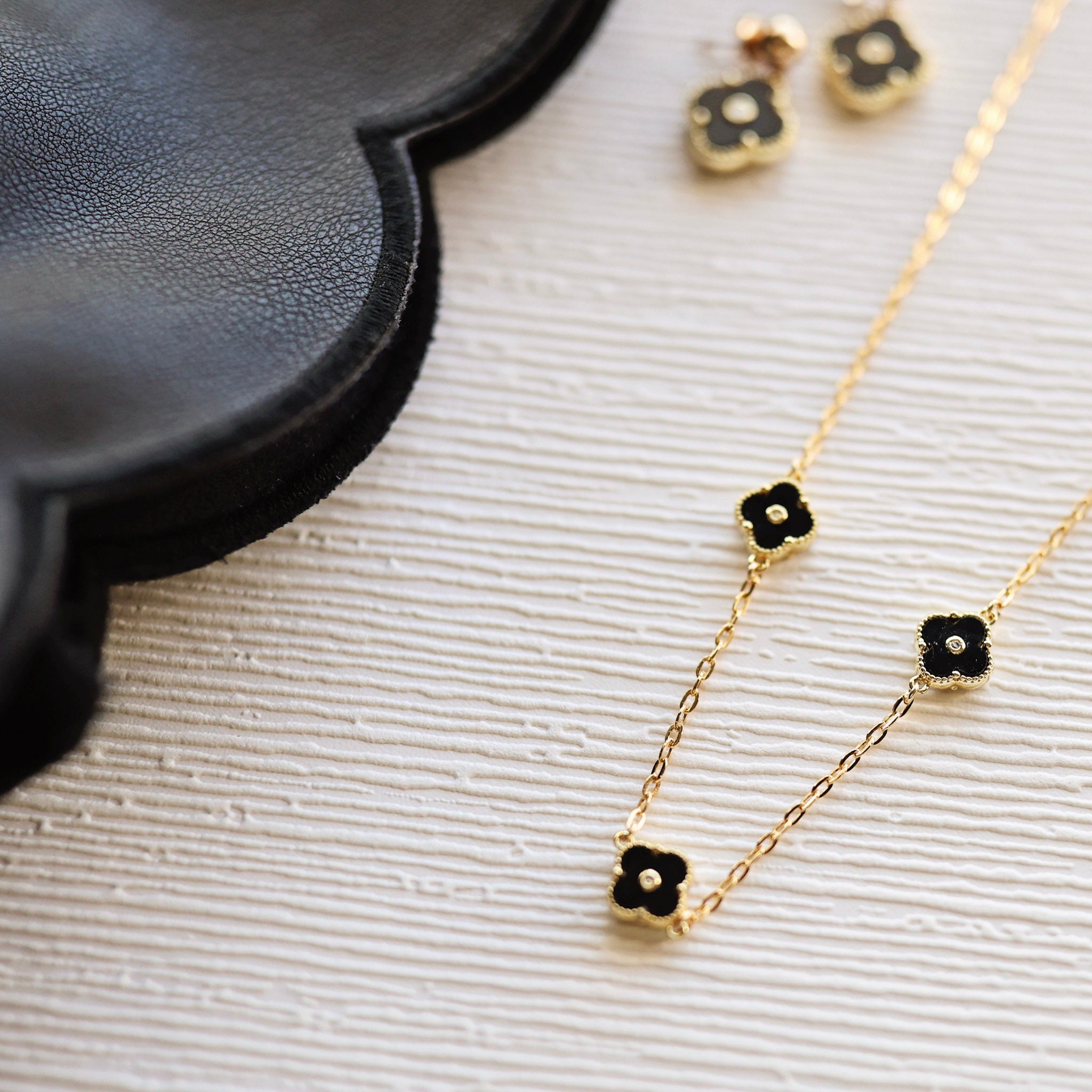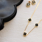 Make a subtle statement this season with the Arden Skye Necklace in Black. Featuring three 10mm black clover connector charms spaced along a dainty 14k gold filled chain, this piece blends refined elegance with a hint of edge. It’s a striking addition to our signature Arden Collection and layers beautifully with other gold favorites.