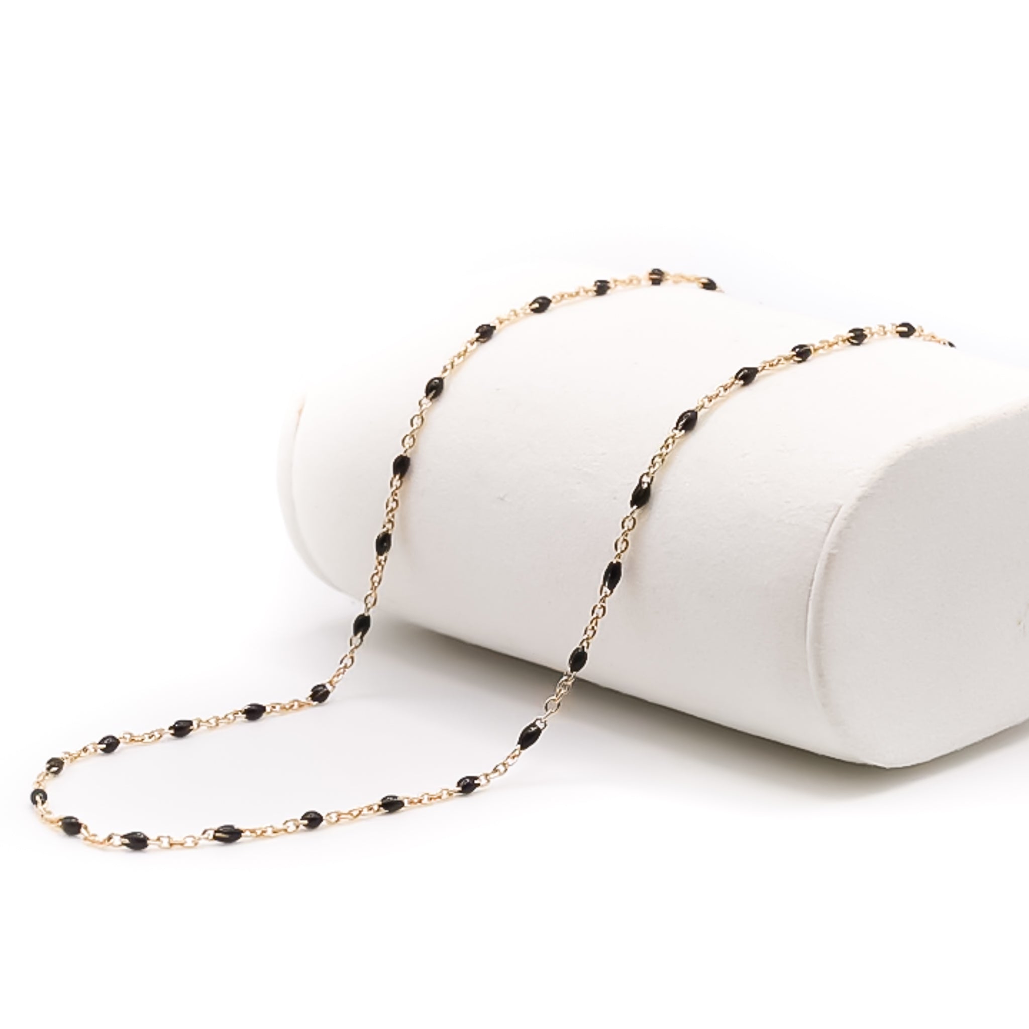 The Dayton Necklace seamlessly blends versatility and elegance, designed to complement any look. With its sleek black enamel and lustrous gold finish, this necklace is an effortless accessory for all seasons and occasions. Its non-tarnishing finish ensures lasting shine and durability, making it a versatile staple in your jewelry collection.