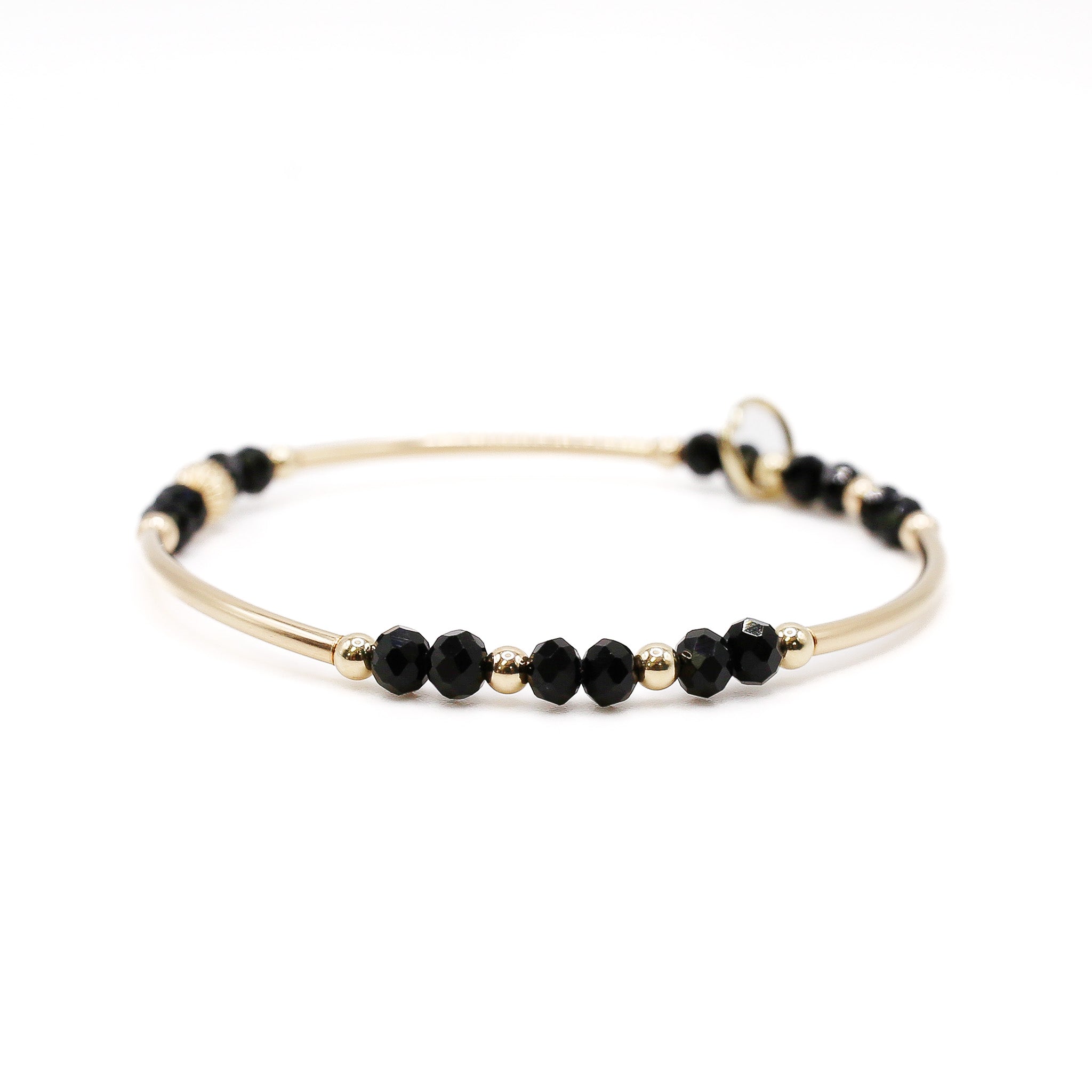 Add some dimension to your jewelry collection with our Gold Filled & Glass Bead Bracelet! This beauty features a lovely mix of 3mm 14k gold-filled beads and sleek tube beads, all paired with black glass beads for a fun pop. It’s the perfect piece to wear on its own or stack with your other favorites for a unique look. Lightweight and comfortable, this bracelet is sure to become a go-to accessory for any occasion!