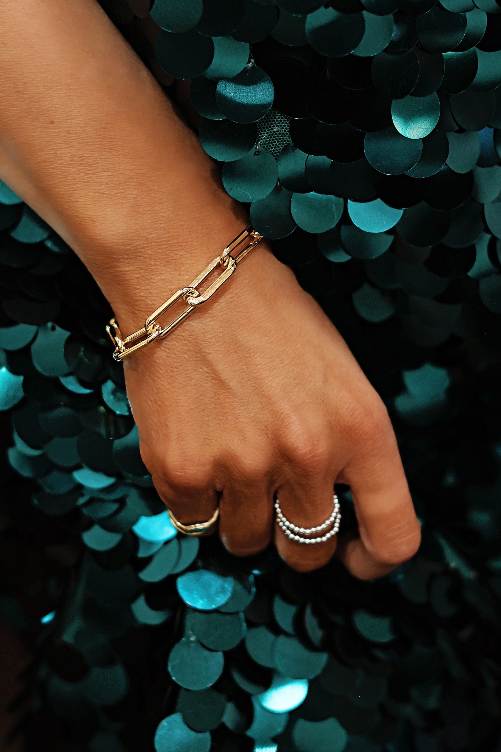 Sleek, sculptural, and effortlessly bold, the Emerson Bracelet redefines the classic paperclip chain. Crafted in rich 9mm gold vermeil links, it offers striking texture and shine that pair beautifully with any stack. A neutral essential with luxe weight, it’s the statement piece you’ll reach for season after season.