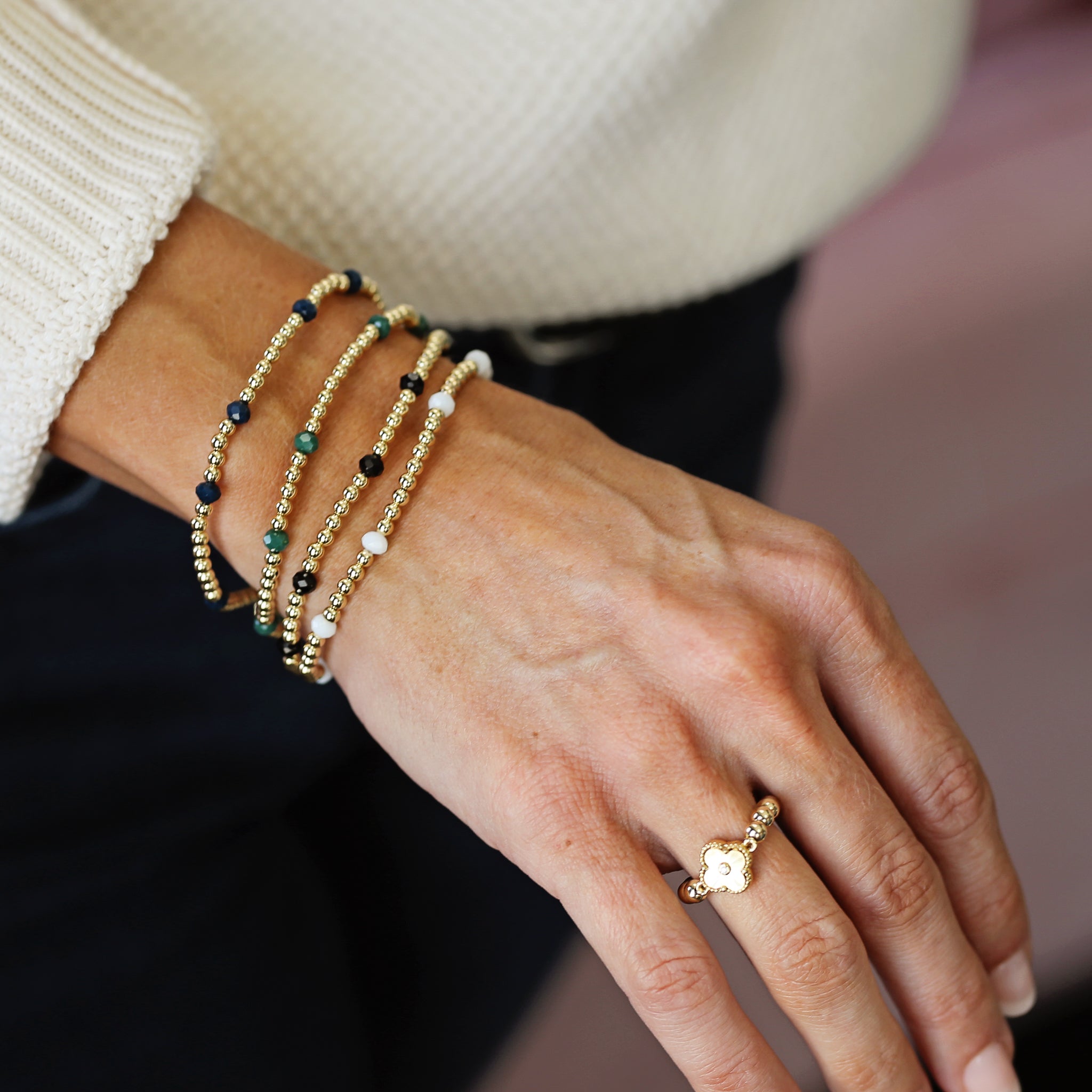 Elevate your style with our 14k Gold-Filled Stretch Bracelet. Made from durable, non-tarnishing 14k gold-filled material, this sleek bracelet shines effortlessly. Perfect for wearing solo or stacking, its stretch fit and timeless design paired with a pop of color is the perfect addition to any wardrobe.