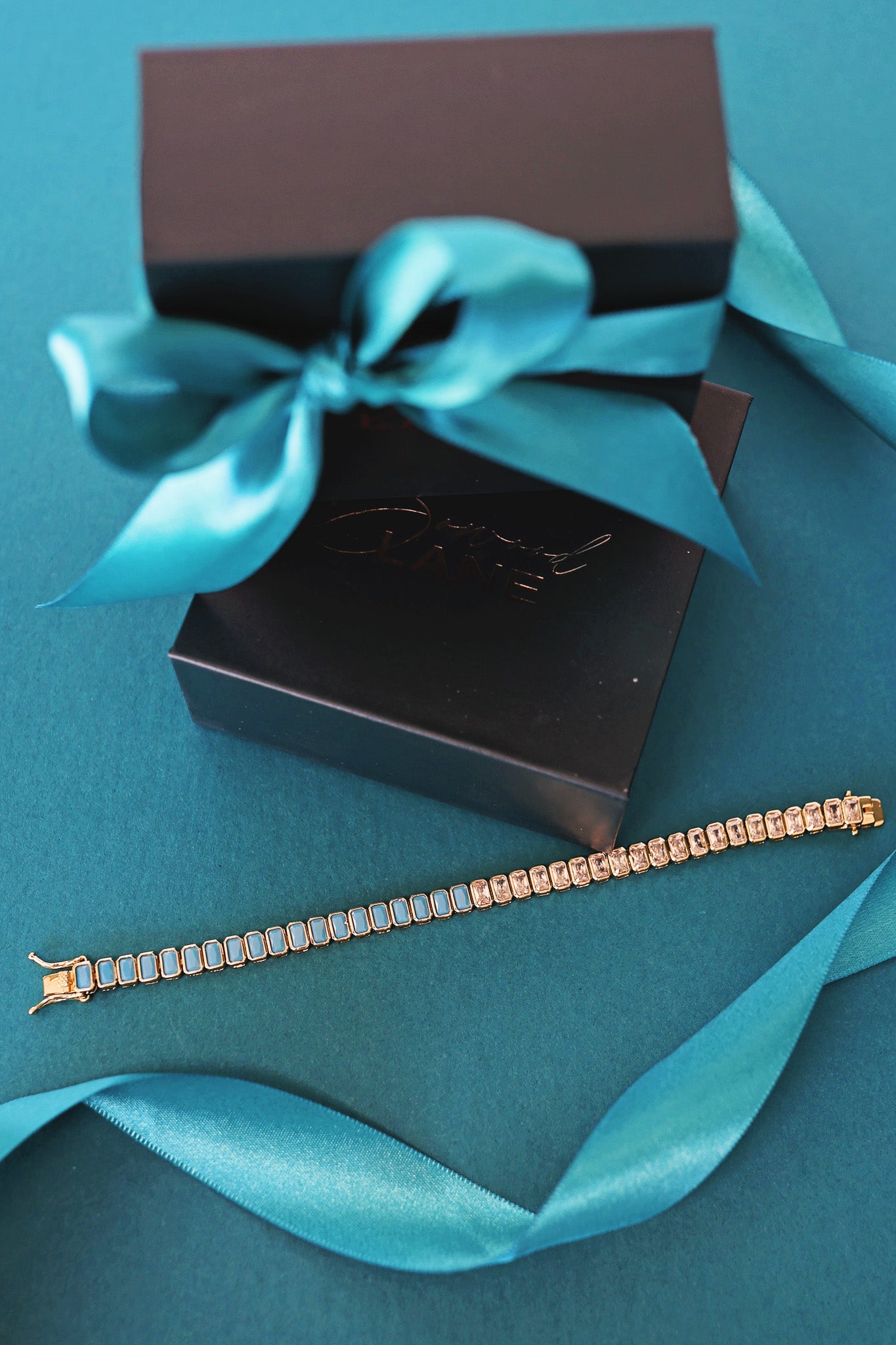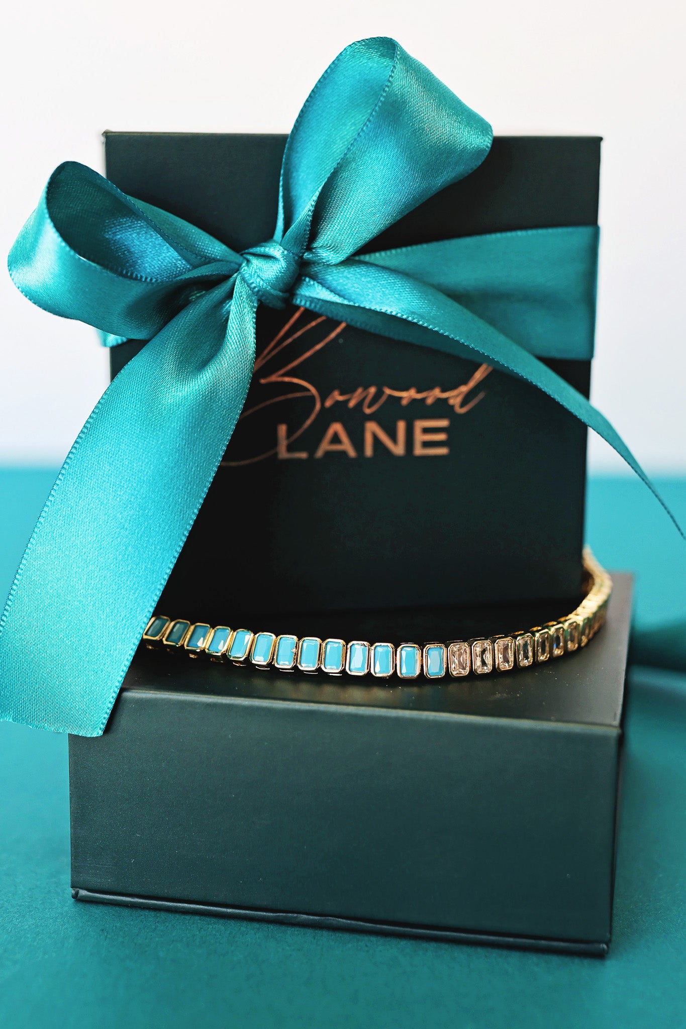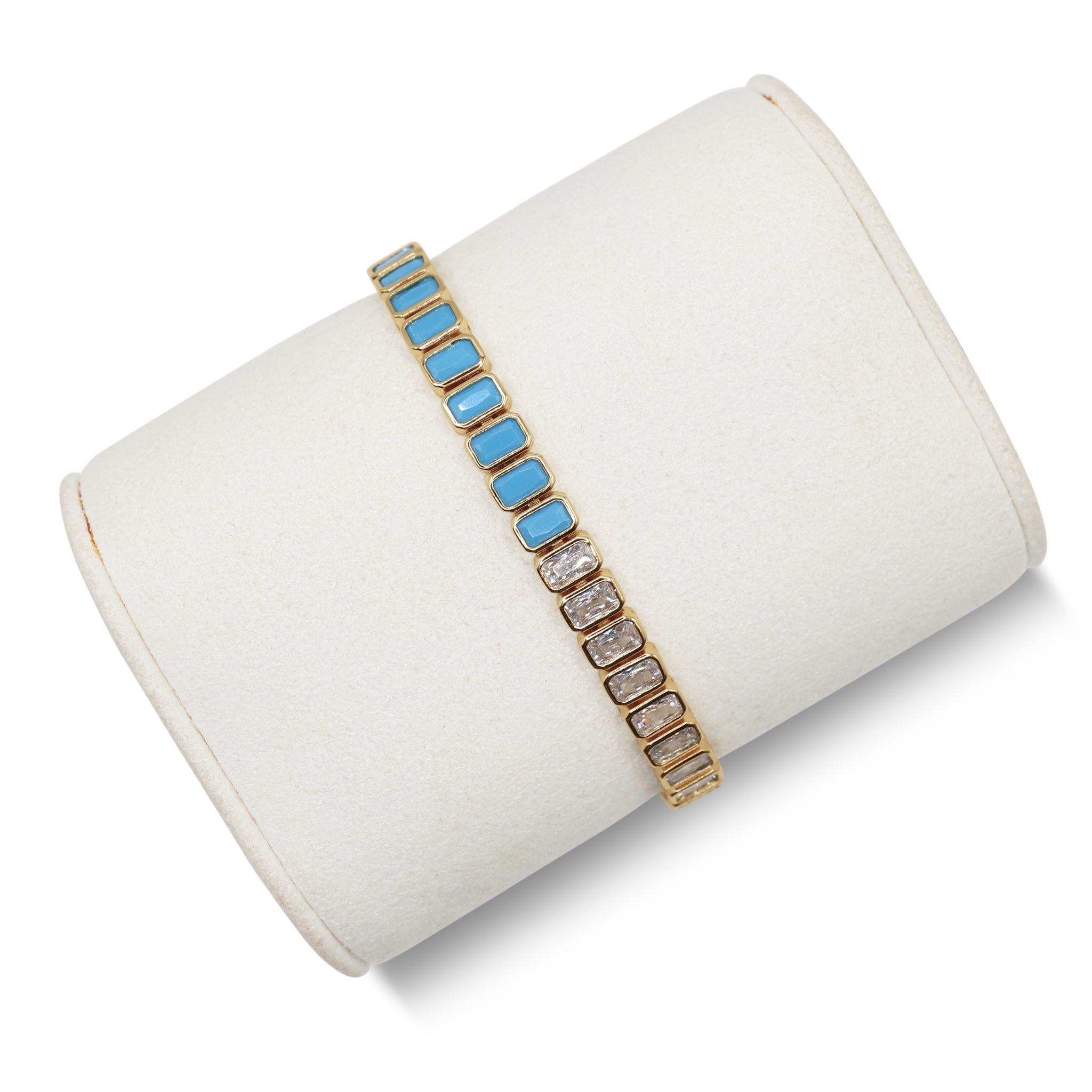 A chic pop of color meets timeless shine in the Hattie Bracelet. This two-tone 6mm tennis design features alternating colored and clear simulated stones, available in turquoise or emerald. Its luminous mix of hues adds depth and dimension, while the box clasp lends a polished, elevated finish.