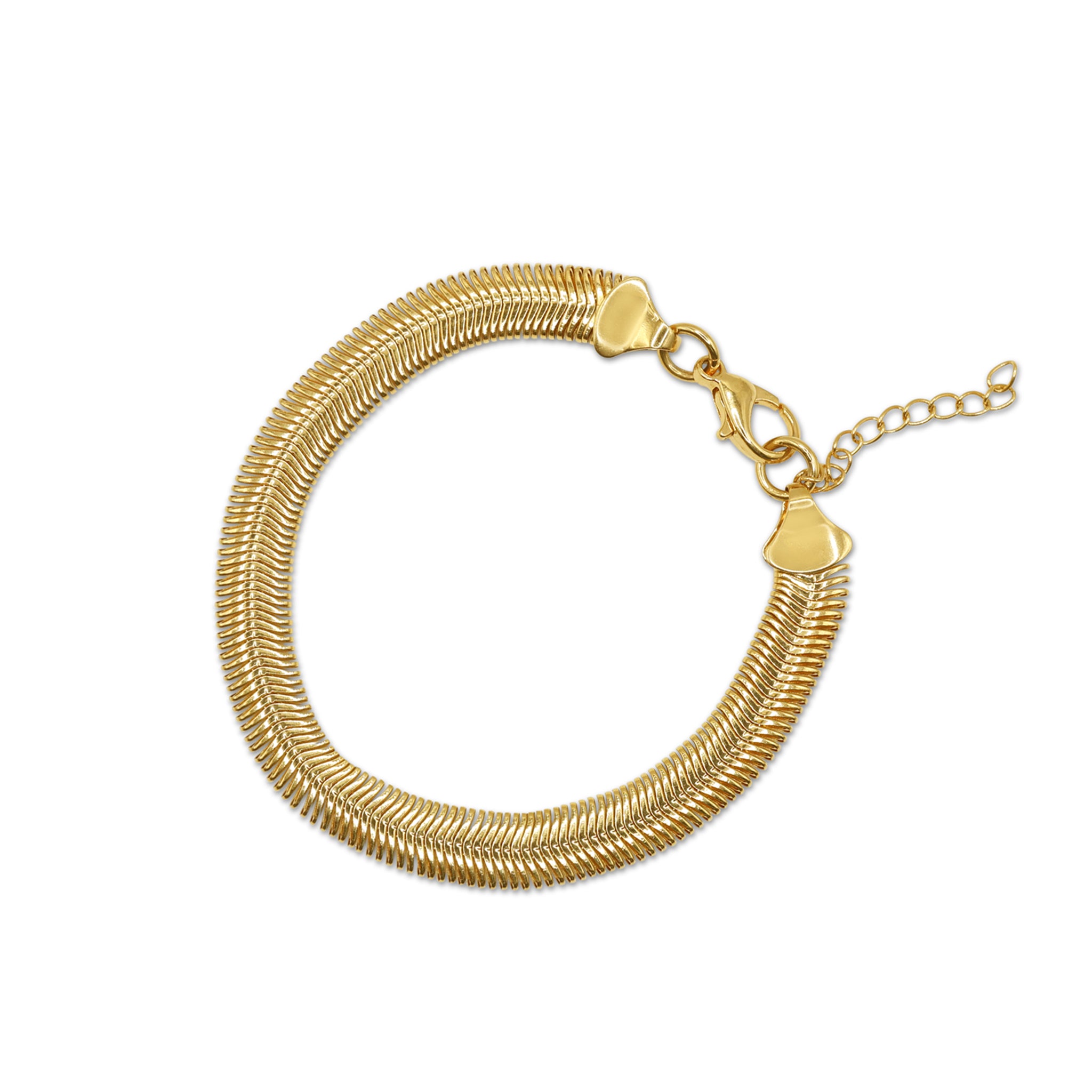 All shine, no effort. The 8mm Ledger Bracelet brings that liquid gold look to your wrist with a bold, slinky herringbone inspired design that moves with you. Its smooth, high-shine finish catches the light from every angle, making it the perfect piece to wear solo or stacked with your everyday favorites. A true statement in simplicity.