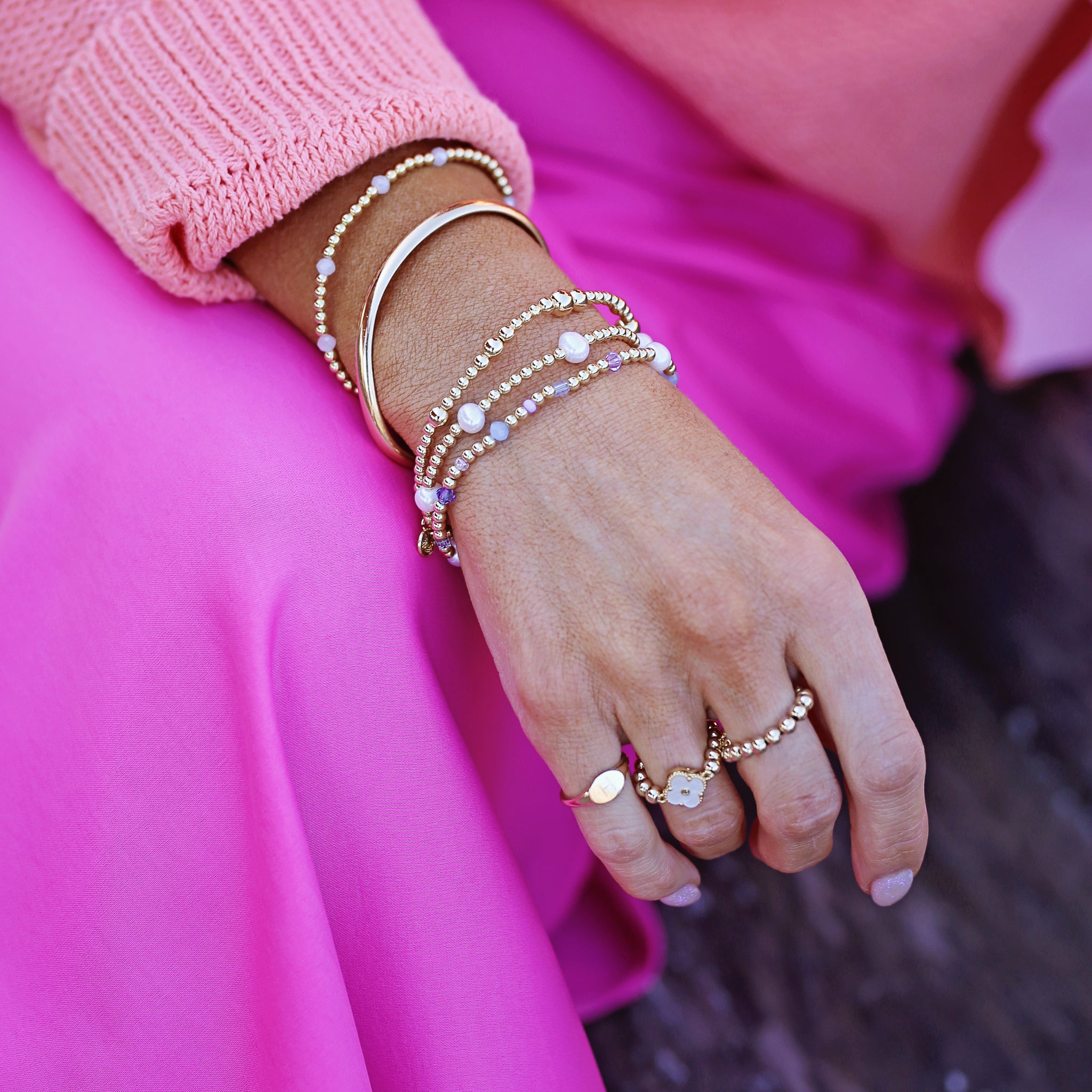 The Leighton 14k Gold Filled Stretch Bracelet is a stunning piece that features a curated assortment of colorful beads, accented with the perfect balance of texture. This eye-catching bracelet adds a pop of vibrant color to any outfit, making it the perfect standalone accessory or a stylish addition to your stack.