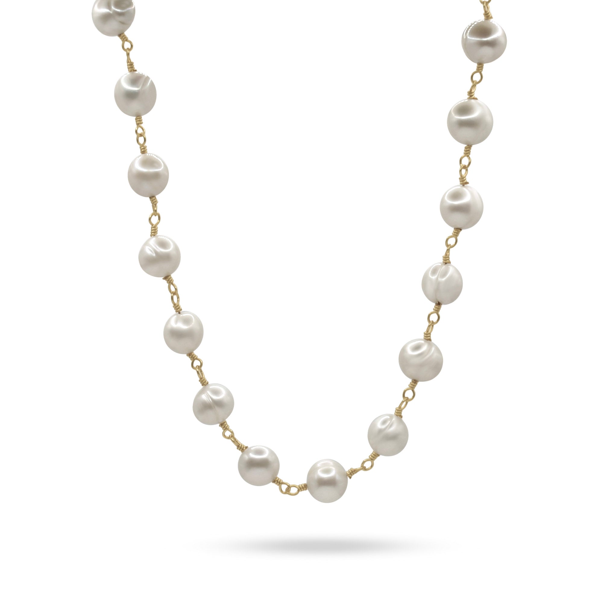 Meet your new statement layer. The Leni Necklace is designed with beautifully irregular 9–10mm potato-shaped cultured freshwater pearls, each one hand-wrapped on a non-tarnish, gold-tone wire for a refined rosary-style finish. The oversized pearls bring a luxe, modern feel while the delicate gold chain keeps the look wearable for everyday.