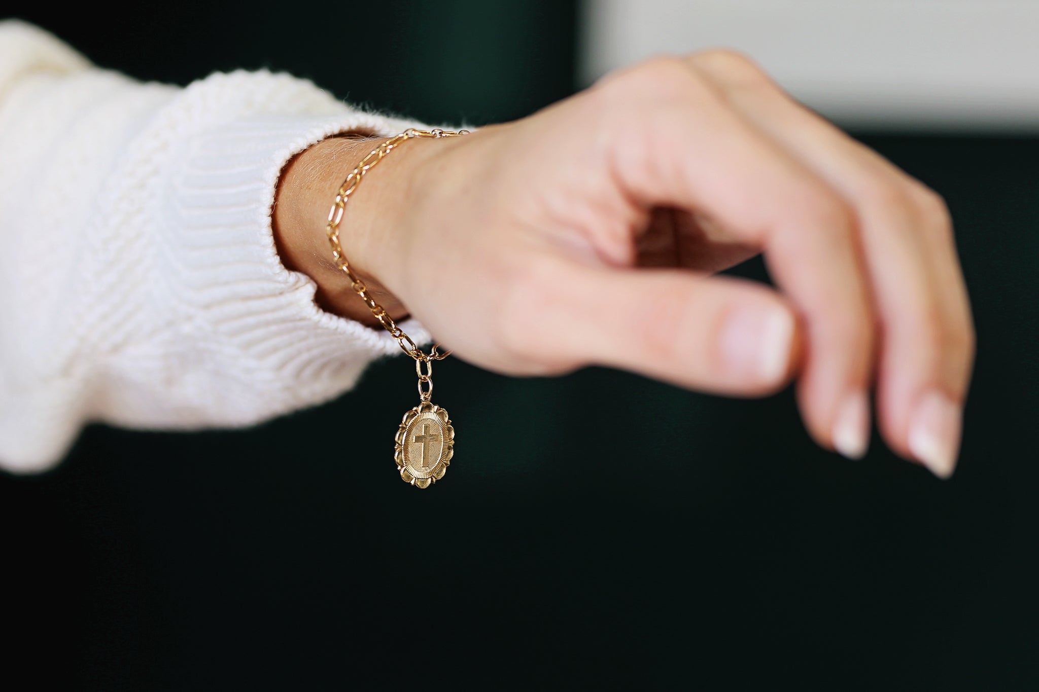 The intricately designed cross medallion symbolizes faith and hope, while the secure 14k gold filled clasp ensures easy wear. Whether layered with other pieces or worn solo, this bracelet is the perfect way to express your style and showcase what matters most to you.