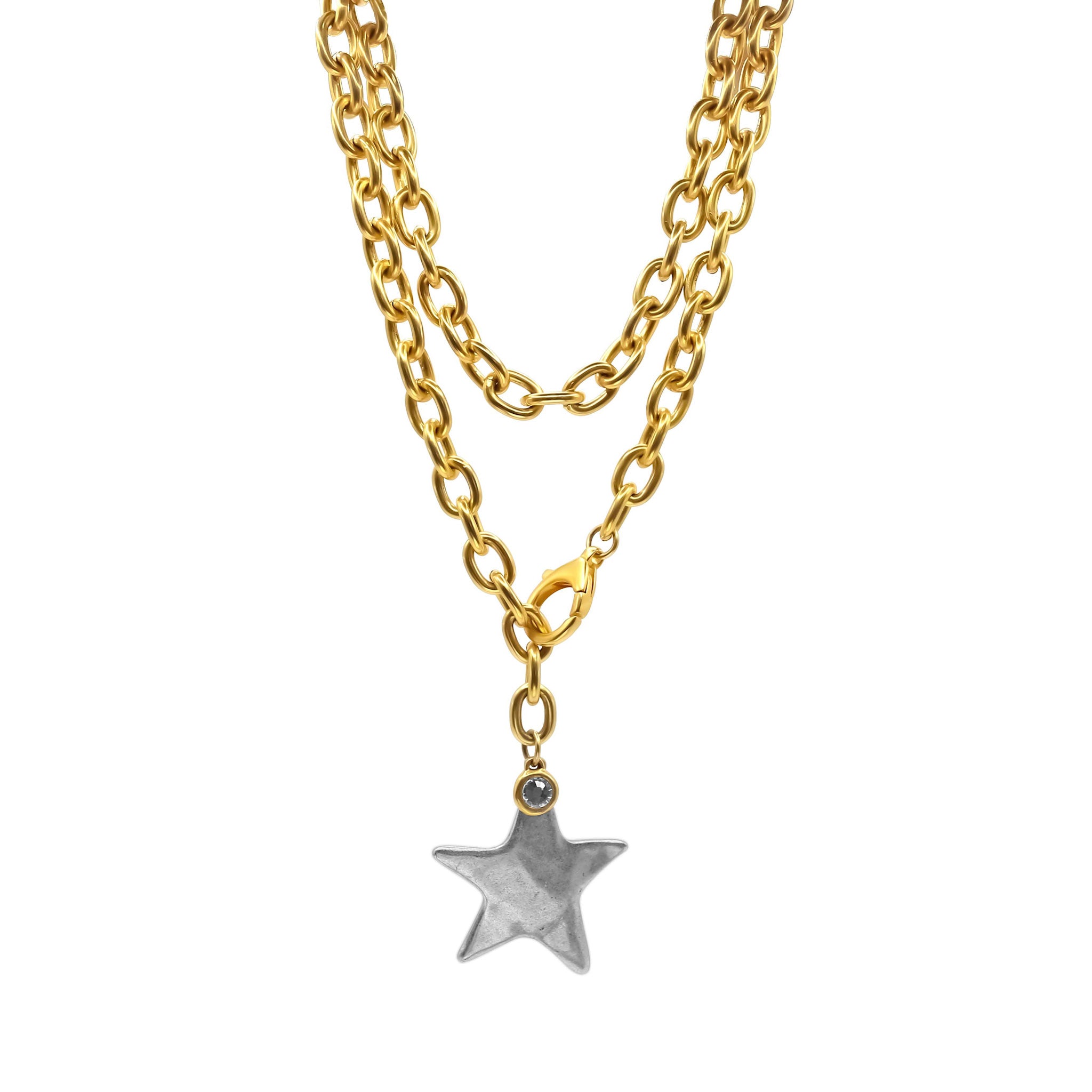 The Prescott Necklace is a double-layered, two-tone stunner that offers endless styling potential. Featuring our signature Blair Chain, a trendy textured star charm, and a sparkling cubic zirconia accent, this necklace brings edge and elegance in one layered look.