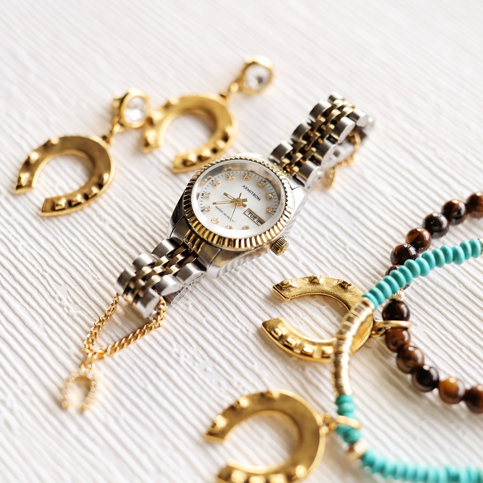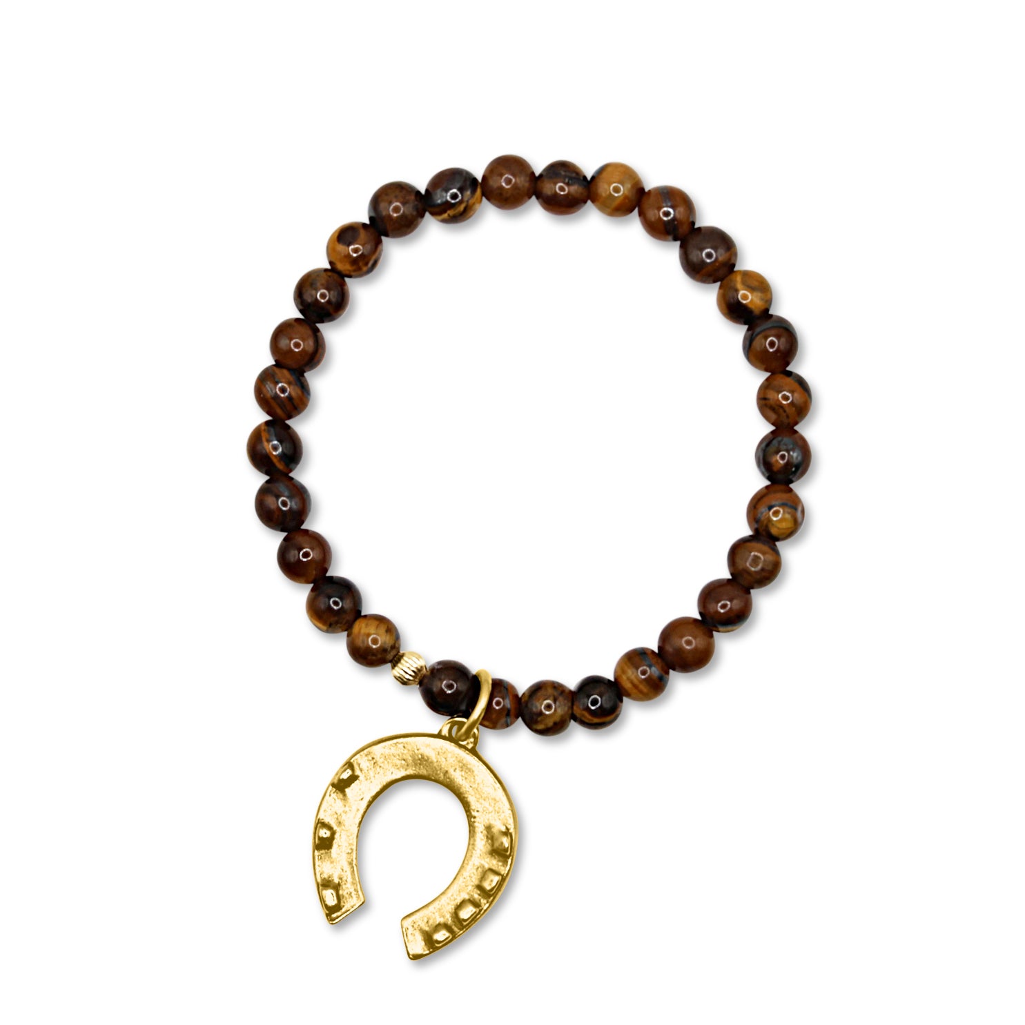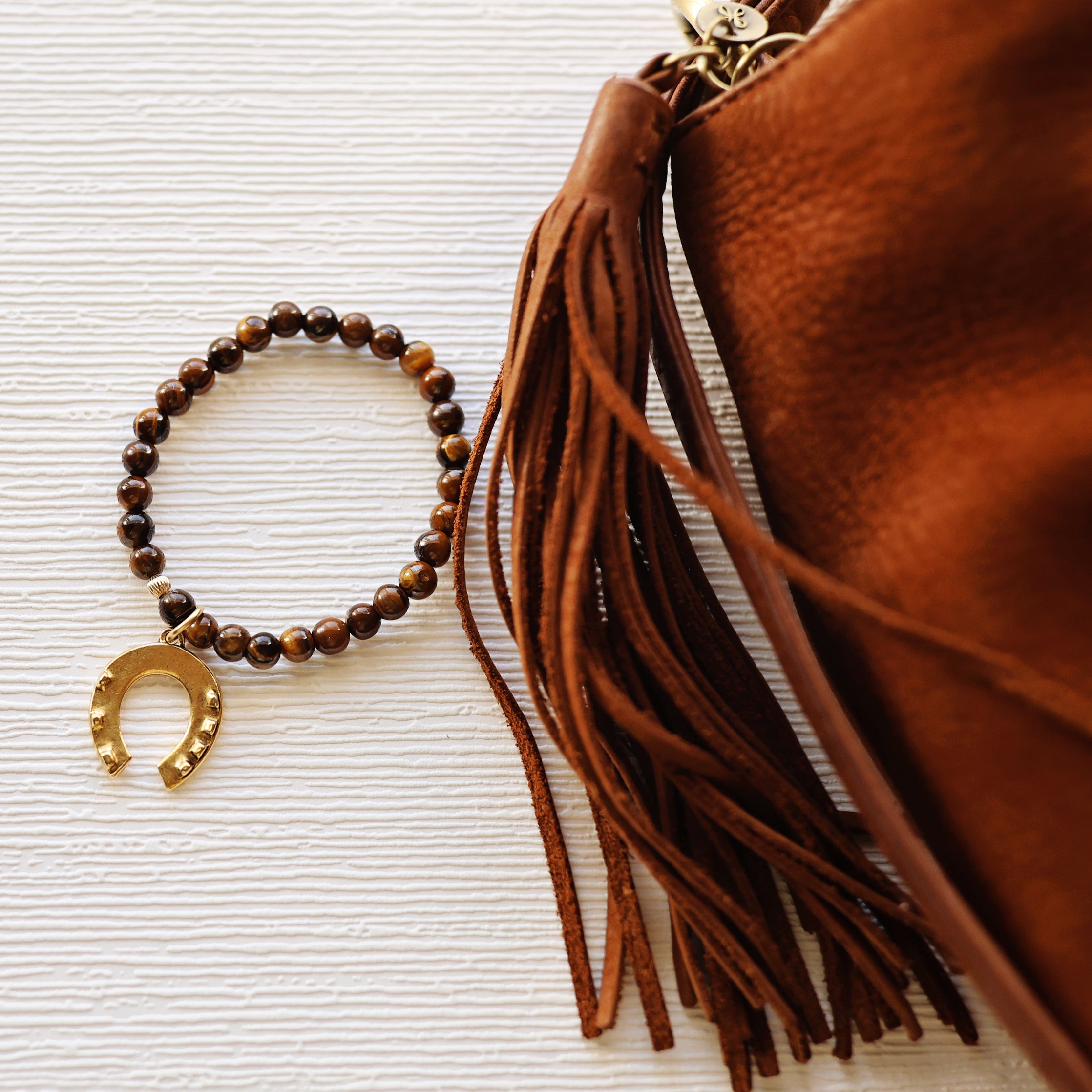 Introducing the Rhett Bracelet, a bold yet refined take on this season’s western trend. Designed with rich 6mm brown tiger eye beads and finished with a textured horseshoe charm, Rhett brings together luck, strength, and modern style in one timeless piece.