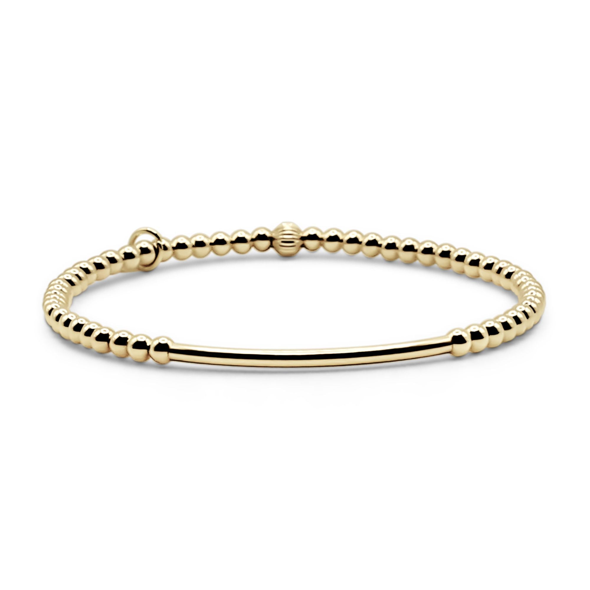 Elevate your everyday style with our 14k Gold Filled Stretch Bracelet! This gorgeous piece features a mix of 3mm gold-filled beads and a sleek gold-filled tube bead, creating a chic look that’s easy to wear. The stretch design means it’s super comfortable and slips right on, making it a go-to accessory for any outfit. Whether you wear it alone for a simple statement or stack it with your other favorites, this bracelet is sure to add a lovely touch of warmth and shine!