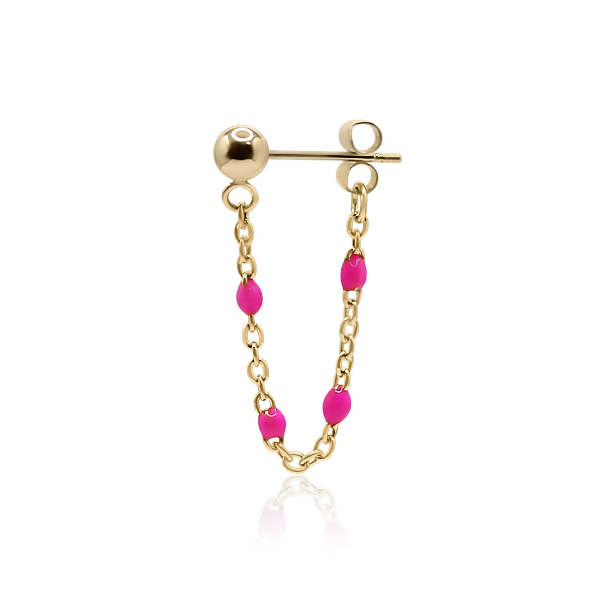 A subtle touch of pink with just the right amount of shine. The Sutton Enamel Chain Earrings feature delicate gold-filled chain with a sleek pink enamel finish, accented by a dainty chain detail for effortless movement and elegance. Whether you’re on vacation or just embracing the brighter days ahead, these earrings add a subtle yet chic flair to your look. Lightweight, versatile, and sophisticated, they’re designed to complement any style while offering the durability of gold-filled materials.